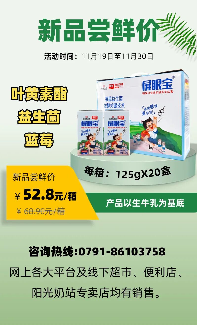 丢掉眼镜,更自信!阳光乳业新品“屏眼宝”亮眼上市!